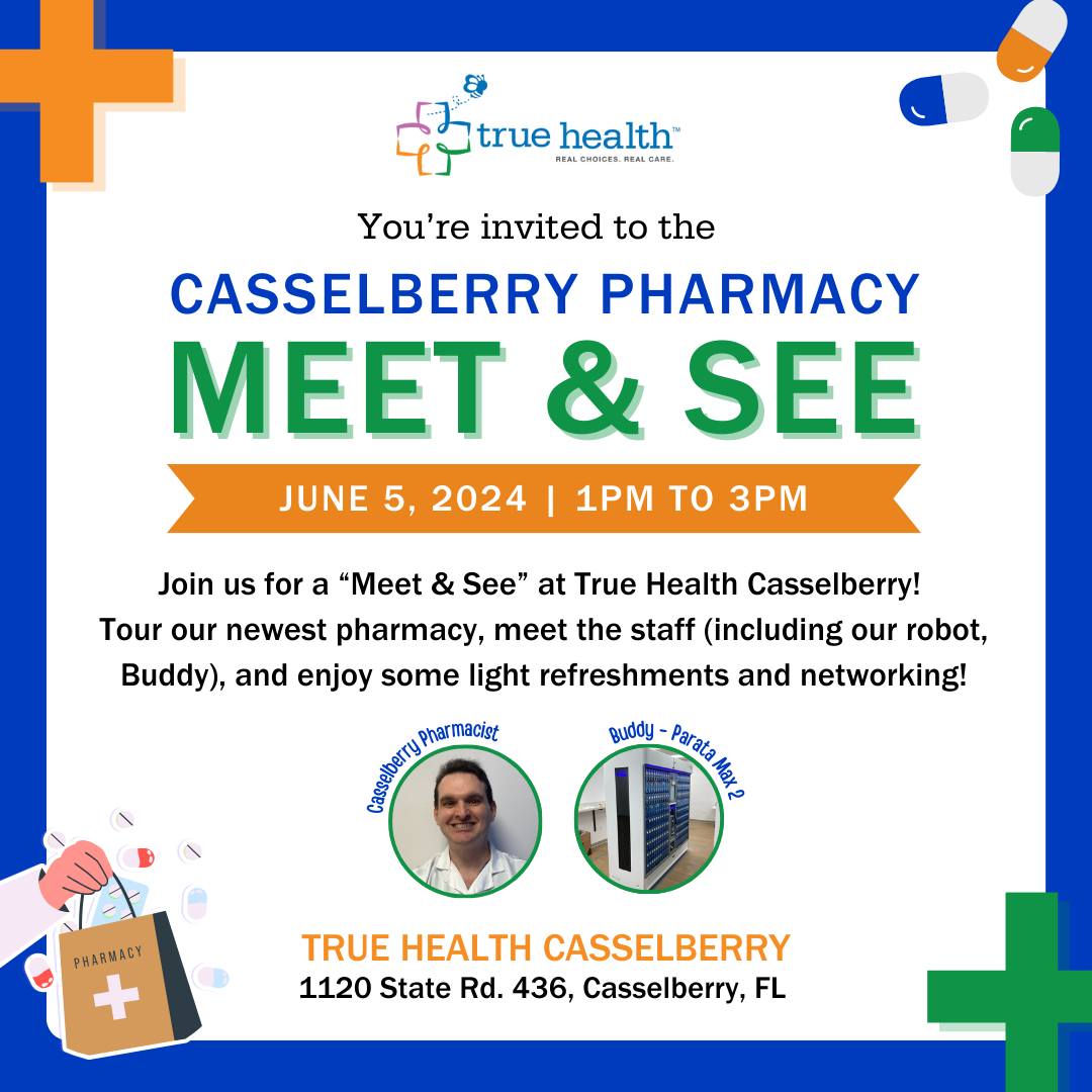 Join us next Wednesday, June 5th, from 1PM to 3PM for a “Meet & See” at our new Casselberry pharmacy! Get a chance to tour the pharmacy, meet the staff (including our robot, Buddy), and enjoy some light refreshments and networking. We hope to see you there!True Health now has 6 on-site pharmacies that offer affordable access to medication, convenient prescription refills, and 340B pharmacy discount program. Learn more about our services and locations by visiting mytruehealth.org or calling 407-322-8645.
