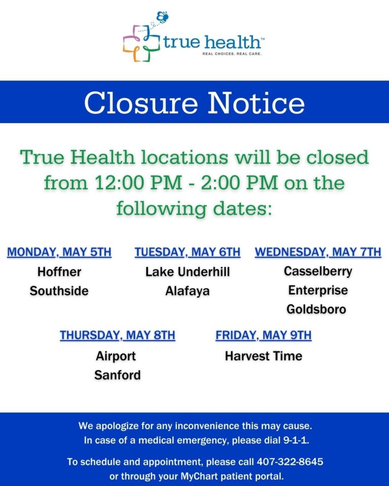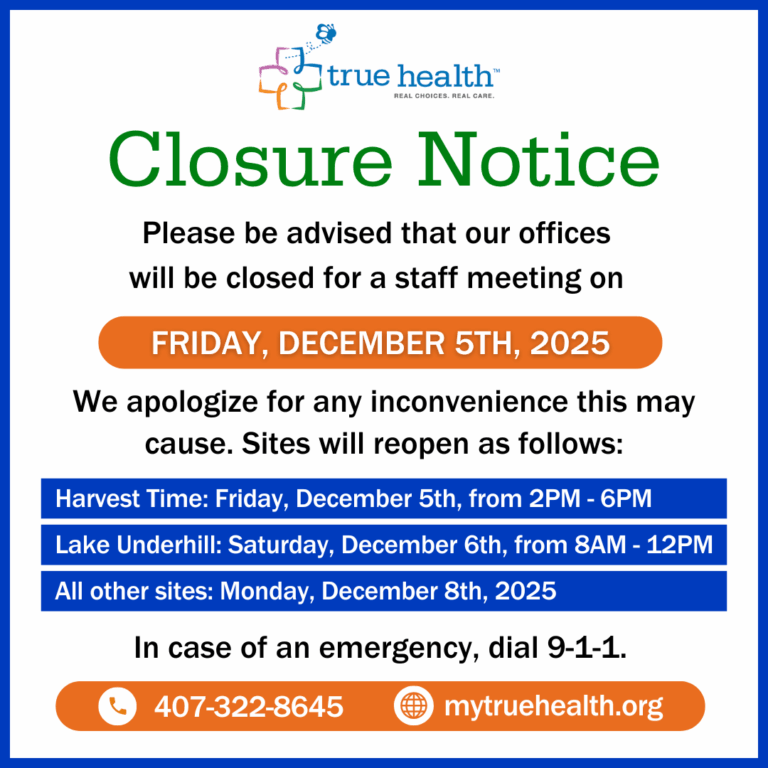 True Health providers can be contacted for after hours emergencies by dialing the main number 407-322-8645.