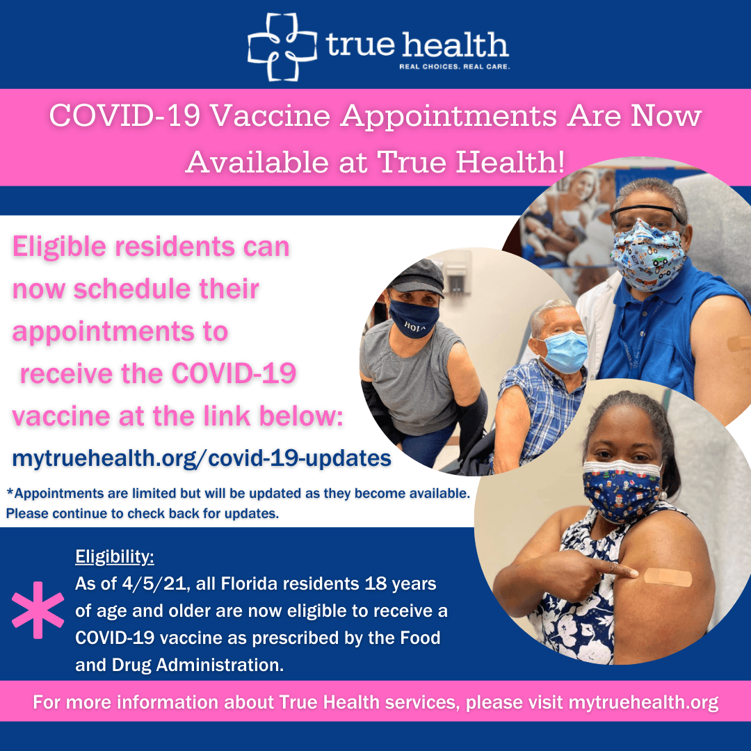 True Health now has COVID-19 vaccine appointments available for both the Janssen (Johnson & Johnson) single-dose COVID-19 vaccine AND the Moderna 2-dose series COVID-19 vaccine! You can self-schedule your appointment today by visiting https://www.mytruehealth.org/covid-19-updates/.