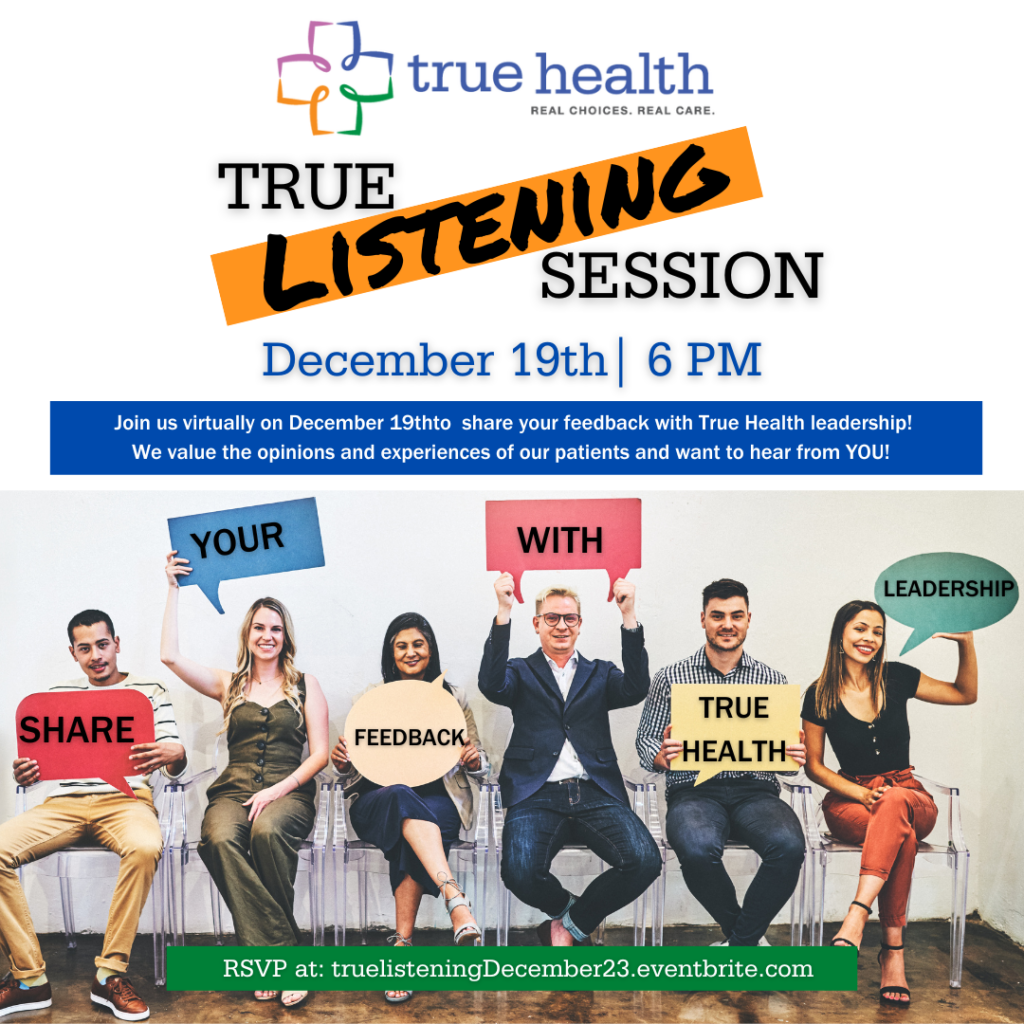 We want to hear from you and invite you to join us for our next True Listening Session on December 19th at 6pm!