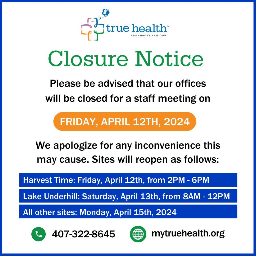 MILTON UPDATE: True Health locations will resume normal operations on Friday, October 11th, EXCEPT at our Airport, Hoffner, and Lake Underhill locations. Patients with appointments at our closed locations will […]